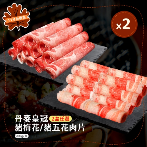 • 1月份優惠-丹麥皇冠豬梅花肉片豬五花(500g/盒)2盒任選