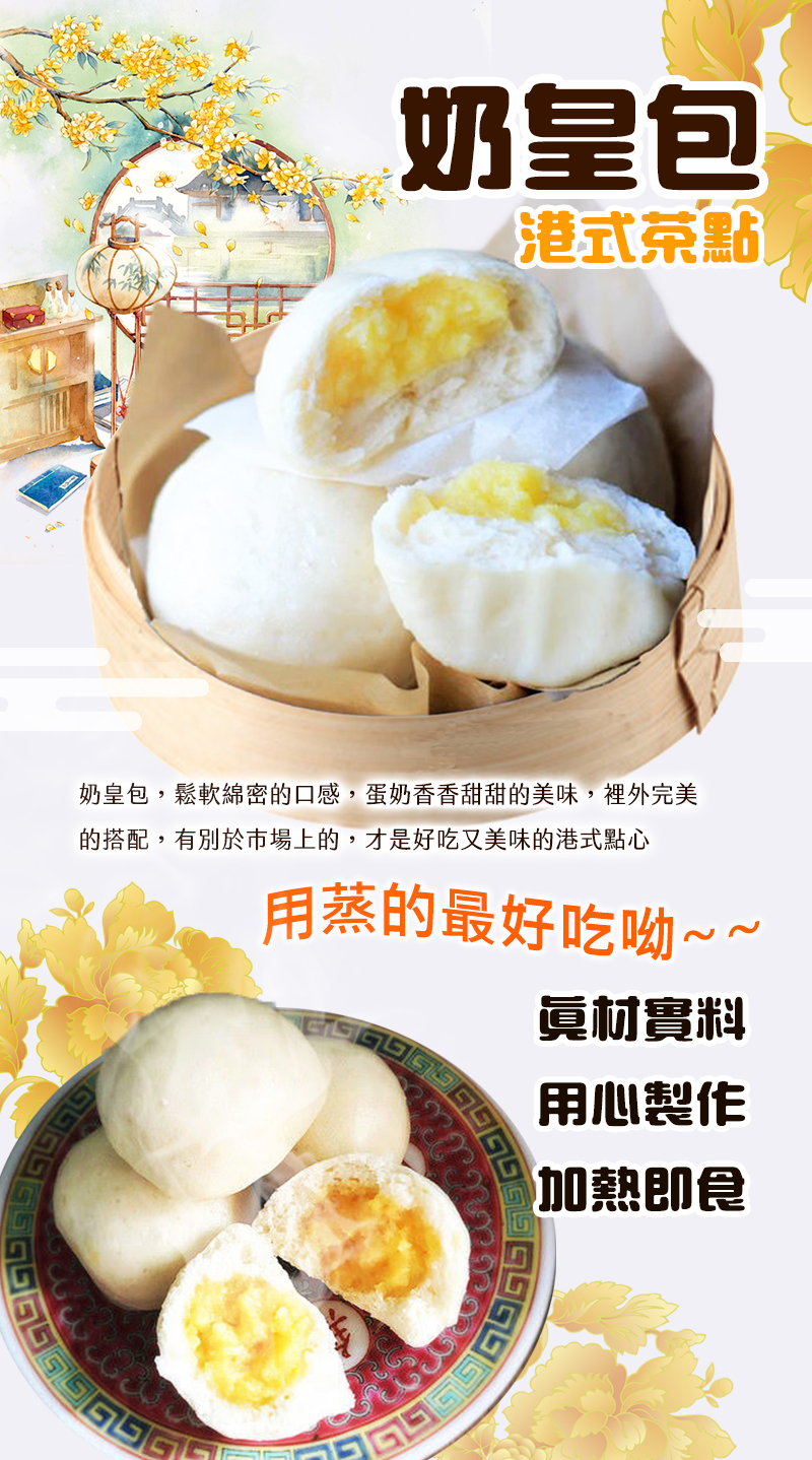 嚴選港式經典小點,內餡以香濃奶黃調製,口感綿密細緻,甜而不膩,每一口都能感受濃厚奶香。外皮鬆軟Q彈,蒸熱後散發誘人香氣,是早餐、下午茶、宵夜的最佳選擇。每盒 10 顆入,分量剛好,冷凍保存便利,取出後只需簡單加熱,即可品嚐正宗港式風味。無論單吃、搭配茶飲或與親友分享,都能讓餐桌增添幸福滋味。