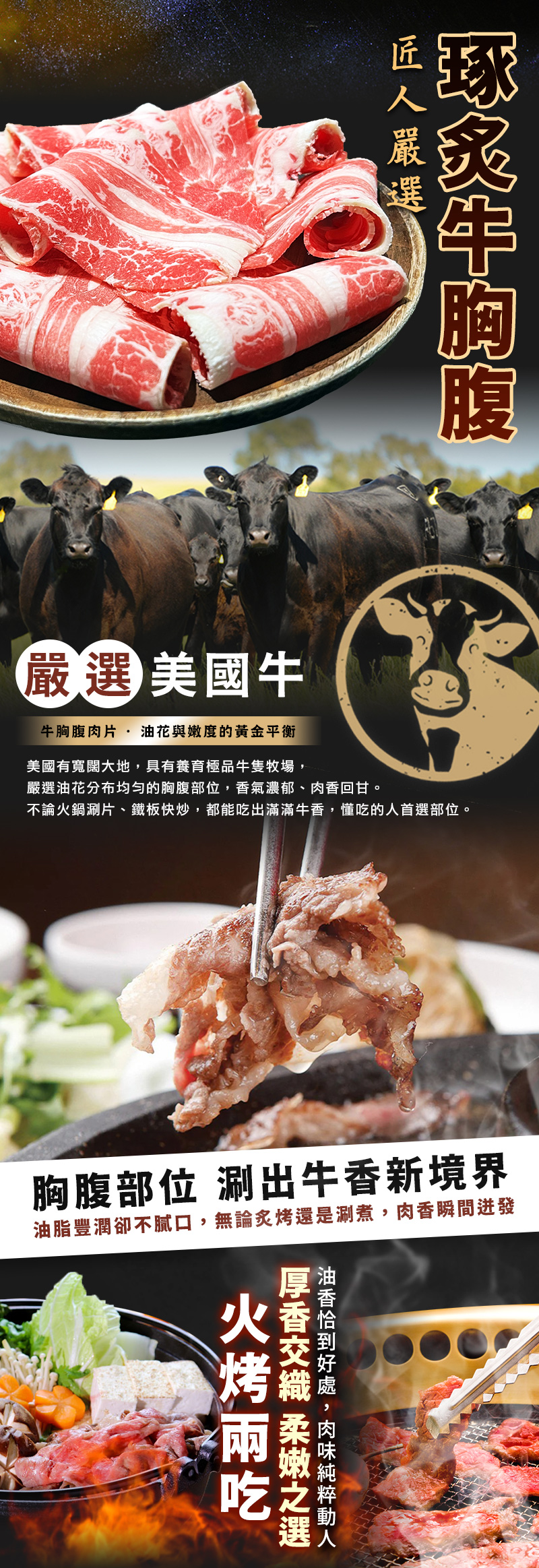 嚴選美國進口牛胸腹部位,油花細緻均勻、肉香濃郁,1kg大份量包裝,一次滿足全家火鍋、燒烤或團聚聚餐所需!薄切設計,涮煮快速不易老,口感滑嫩帶汁,無論是壽喜燒、牛肉鍋、快炒還是牛丼蓋飯都能輕鬆駕馭。冷凍保存、使用方便,想吃多少拿多少,超高CP值,肉控冰箱必囤!
