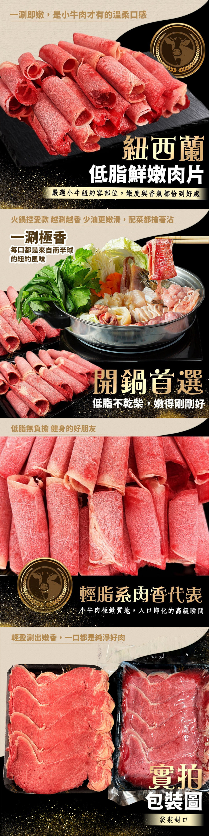 嚴選紐西蘭草飼牛低脂部位,肉質細緻、油花少卻依然柔嫩多汁。高蛋白、低脂肪,無論是健身族、控制飲食或家庭料理都適合。可火鍋涮煮、快炒、燒烤或壽喜燒,口感鮮嫩不柴、香氣自然甘甜。紐西蘭純淨牧場飼養,肉質健康無腥味。退冰即煮,輕鬆上桌,美味無負擔。 商品品名:紐西蘭低脂鮮嫩肉片 商品組合/規格:2包 淨重、容量.(含液商品需標註固形物):300g±3%/包 內容物成分(全展開)成分有豬及牛的需於背後標註產地:牛肉 原產地(國):紐西蘭 製造廠商或國內負責廠商名稱:好神國際股份有限公司 製造廠商或國內負責廠商地址:新北市中和區新民街94巷11號 製造廠商或國內負責廠商電話:02-82267886 保存期限:冷凍保存12個月(有效日期: 標示於包裝上) 食品業者登錄字號:H-154230747-00000-7 投保產品責任險字號:第一產物保險產品責任險保單號1000字第14PR000651號 過敏原:無 ※由於肉品、海鮮及蔬菜等生鮮產品,天然生長大小本就有所差異,實際商品可能在外觀、形狀上略有不同。商品以「實際重量」為準,敬請理解並放心選購。 備註: 本產品屬"冷凍食品"無7天鑑賞期退換貨。 基於食品衛生考量,除商品本身瑕疵外,商品一經拆封後,不可退貨,且退貨時請保留紙箱及商品,並於到貨後24小時內以電話、LINE@:@shg4038g或網站中的"聯絡我們",我們會盡全力協助您處理,謝謝。 生鮮肉品皆為原裝進口原肉現切,故無任何添加及醃漬嫩化,如需軟嫰肉質,請自行斷筋及醃漬嫩化。 生鮮肉品因真空包裝缺氧,顏色呈暗紅色是正常現象。 宅配過程因商品碰撞可能導致失去真空效果,未退冰狀況下,並不影響商品的新鮮度,請放心食用! 好神國際所提供的產品配送區域範圍目前僅限台灣本島。 若商品無問題,因個人因素(口味、觀念、認知、料理方式問題),欲退換貨,需付物流處理費用250元,商品依溫層保存,外包裝保持原狀,如商品狀態受損者將影響退換貨權益。 商品顏色可能因各顯示器設定而有差異,依實際供貨商品為準。 商品之實際配貨日期、退換貨日期,以通知之內容為準。 收到退貨之商品且確認無誤後,7-14個工作天內辦理退款。