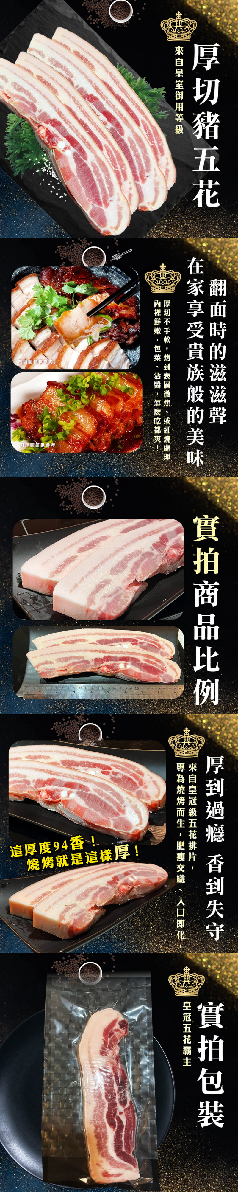 - 三層分明,口感層次豐富 - 厚切飽滿,入口香濃帶勁 - 帶皮保留原始風味嚼勁 - 份量適中,家庭料理方便 - 急速冷凍,完整鎖住鮮美 商品品名:皇冠厚切三層帶皮豬五花 商品組合/規格:1條/包 淨重、容量.(含液商品需標註固形物):280g~300g/條 內容物成分(全展開)成分有豬及牛的需於背後標註產地:豬五花(法國) 原產地(國):法國 製造廠商或國內負責廠商名稱:好神國際股份有限公司 製造廠商或國內負責廠商地址:新北市中和區新民街94巷11號 製造廠商或國內負責廠商電話:02-82267886 保存期限:冷凍保存12個月(有效日期: 標示於包裝上) 食品業者登錄字號:H-154230747-00000-7 投保產品責任險字號:第一產物保險產品責任險保單號1000字第14PR000651號 過敏原: 不適合對其過敏者食用 ※由於肉品、海鮮及蔬菜等生鮮產品,天然生長大小本就有所差異,實際商品可能在外觀、形狀上略有不同。商品以「實際重量」為準,敬請理解並放心選購。 備註: 本產品屬"冷凍食品"無7天鑑賞期退換貨。 基於食品衛生考量,除商品本身瑕疵外,商品一經拆封後,不可退貨,且退貨時請保留紙箱及商品,並於到貨後24小時內以電話、LINE@:@shg4038g或網站中的"聯絡我們",我們會盡全力協助您處理,謝謝。 生鮮肉品皆為原裝進口原肉現切,故無任何添加及醃漬嫩化,如需軟嫰肉質,請自行斷筋及醃漬嫩化。 生鮮肉品因真空包裝缺氧,顏色呈暗紅色是正常現象。 宅配過程因商品碰撞可能導致失去真空效果,未退冰狀況下,並不影響商品的新鮮度,請放心食用! 好神國際所提供的產品配送區域範圍目前僅限台灣本島。 若商品無問題,因個人因素(口味、觀念、認知、料理方式問題),欲退換貨,需付物流處理費用250元,商品依溫層保存,外包裝保持原狀,如商品狀態受損者將影響退換貨權益。 商品顏色可能因各顯示器設定而有差異,依實際供貨商品為準。 商品之實際配貨日期、退換貨日期,以通知之內容為準。 收到退貨之商品且確認無誤後,7-14個工作天內辦理退款。