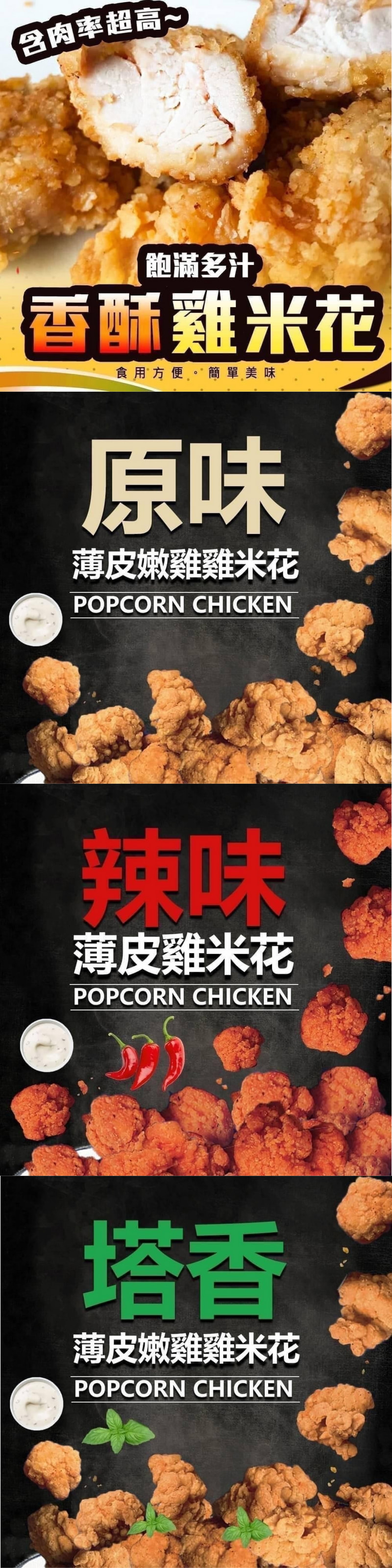 外酥內嫩、鮮嫩多汁!金黃雞米花共有 原味、辣味、塔香 三種風味可選,每包600g,大份量適合家庭囤貨或派對分享。選用優質雞肉,裹上酥香麵衣,氣炸鍋、油炸鍋皆可輕鬆料理,加熱即享,方便又快速。原味經典、辣味微辣過癮、塔香帶九層塔清香,各有特色,是大人小孩都喜歡的炸物點心,宵夜、便當、下午茶零嘴都超百搭!
